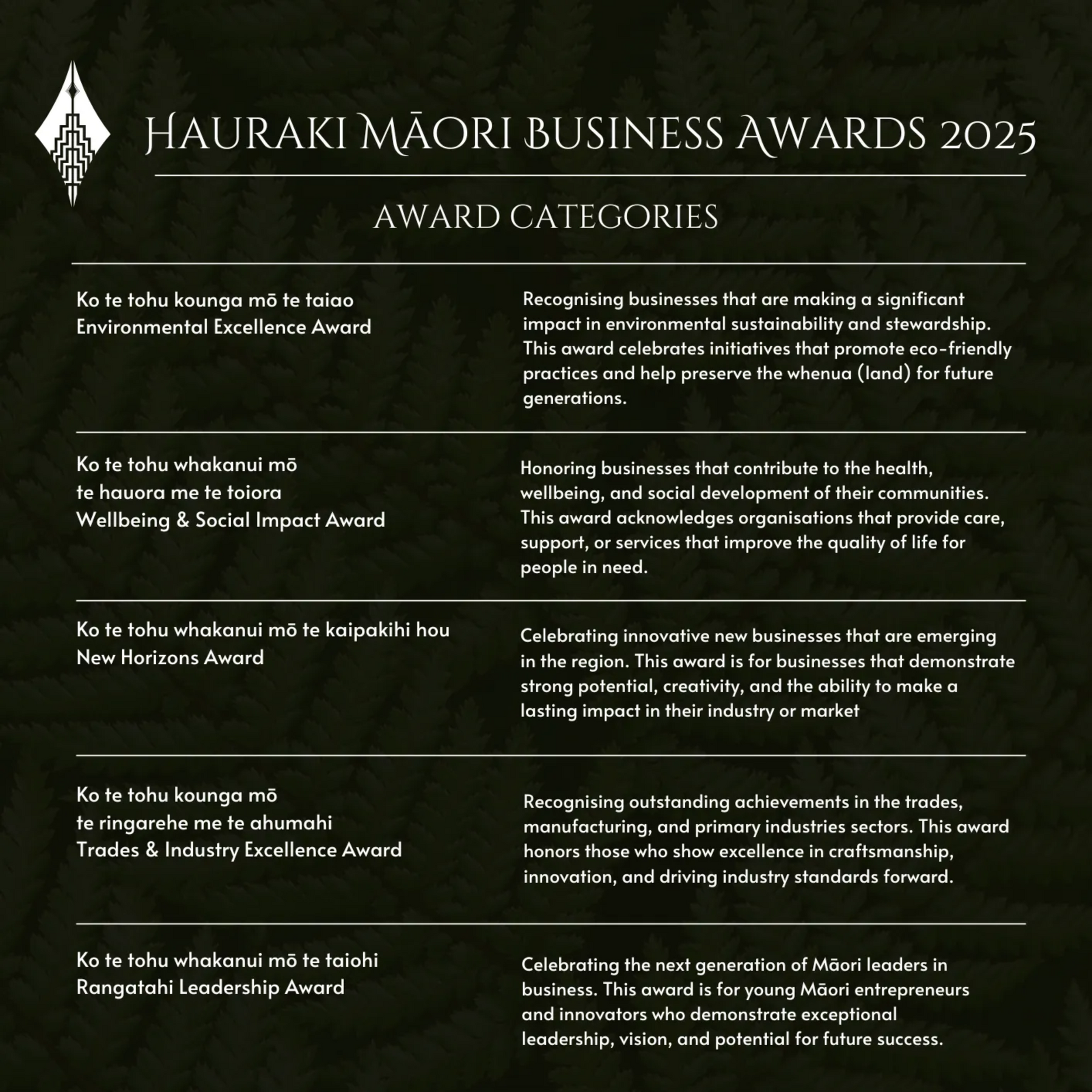The Inaugural Hauraki Māori Business Awards aims to celebrate excellence, innovation, and resilience within Māori enterprise. By providing a platform we endeavour to showcase and elevate our businesses locally and nationally.